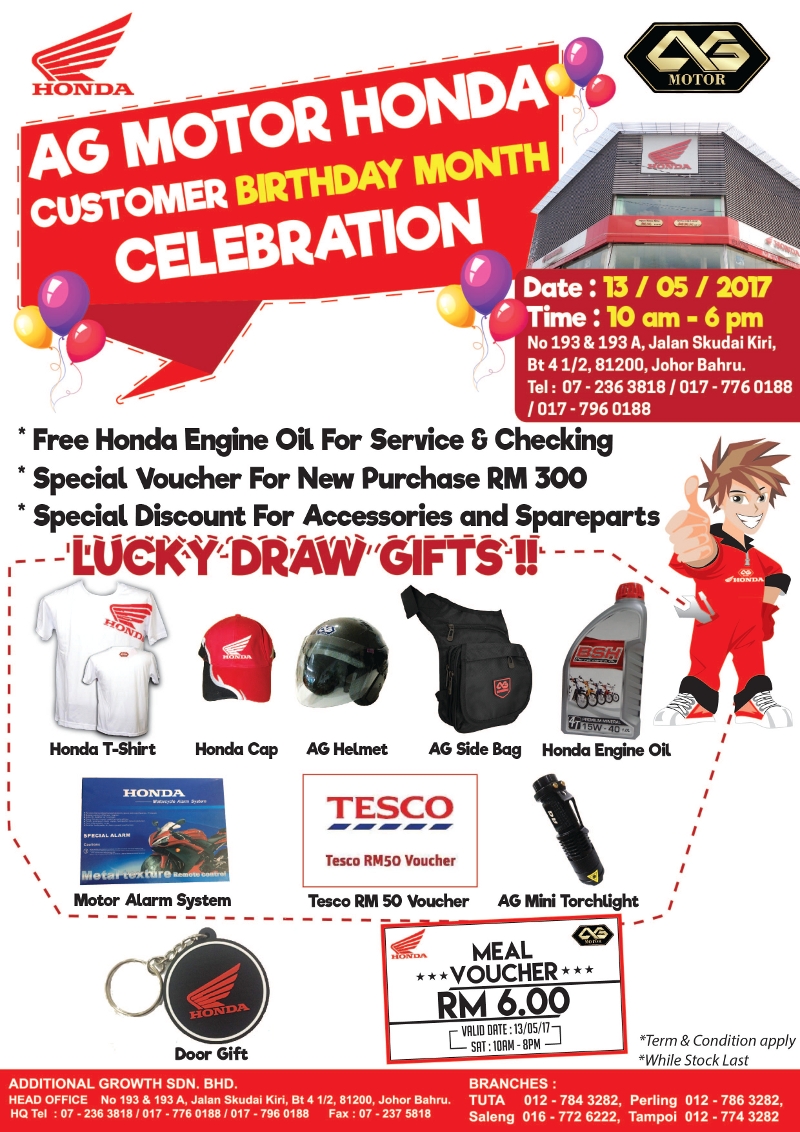 2017 MAY 13 - AG MOTOR HONDA CUSTOMER BIRTHDAY MONTH CELEBRATION